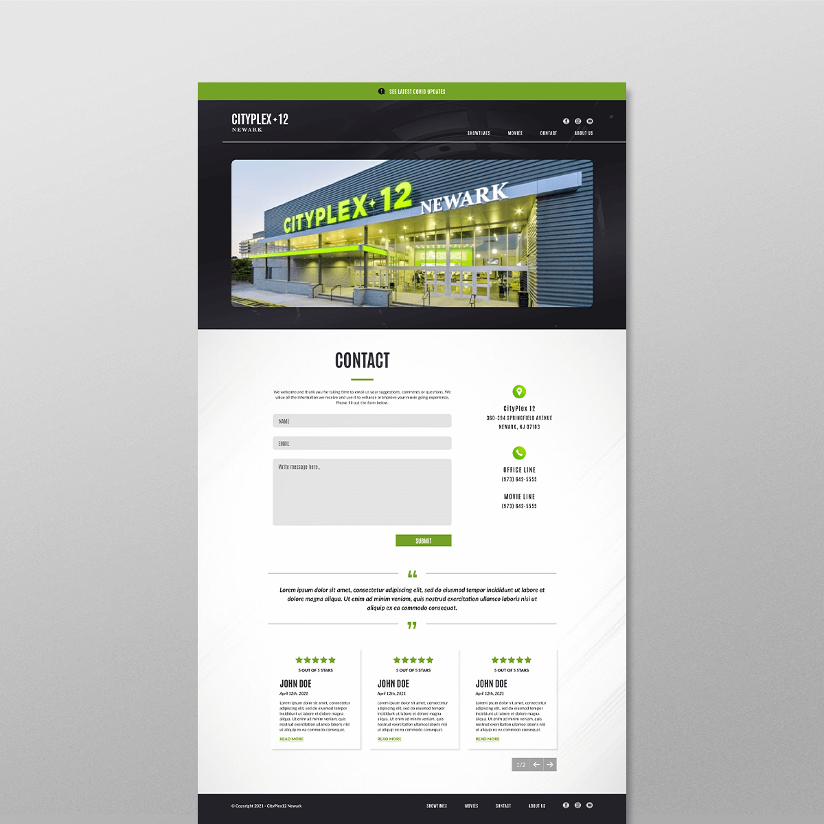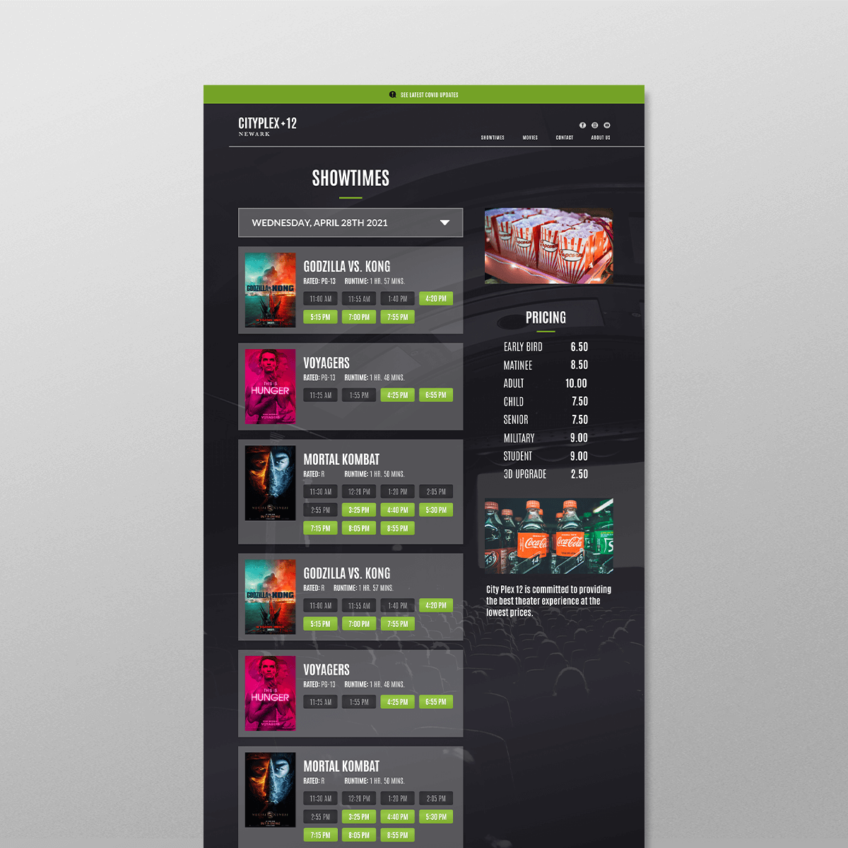 Working with the creative agency Resident360, I designed a refresh of the CityPlex12 website. They were looking for a modern, mobile friendly, easy-to-use update that also highlighted their part-owner, Shaq. I mocked up the website using XD and provided three rounds of revisions. The final protoype was then given to their web developer for coding and deployment.